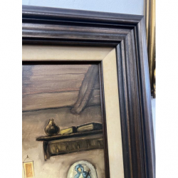 Obraz olejny wiejskie wnętrze/Rustykalny klimat/sygnowany