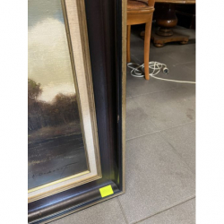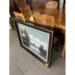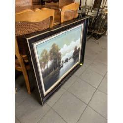 Praca oprawiona w drewnianą, ciemną ramę, która nadaje jej elegancki wygląd.