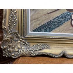 Dzieło zostało oprawione w ozdobną, złotą ramę.