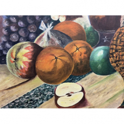 Przedmiotem sprzedaży jest obraz martwa natura przedstawiający owoce.