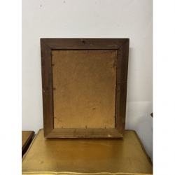 Oprawiony jest w piękną, złotą ramę, która dodaje mu elegancji.