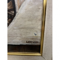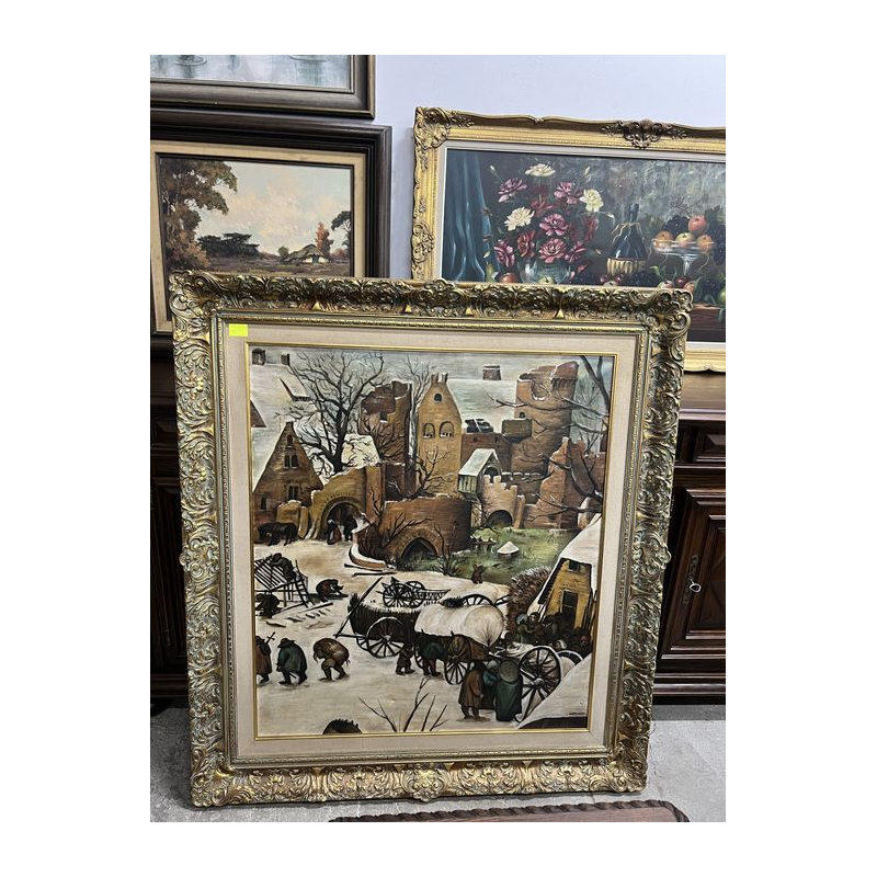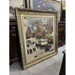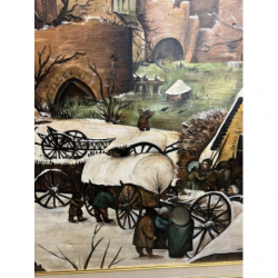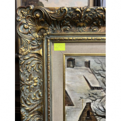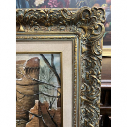 Przedmiotem sprzedaży jest duży obraz w ozdobnej złoconej ramie, malowany na płótnie.