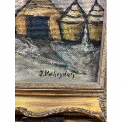 Przedmiotem sprzedaży jest obraz malowany na desce w złotej ramie.