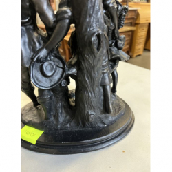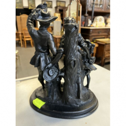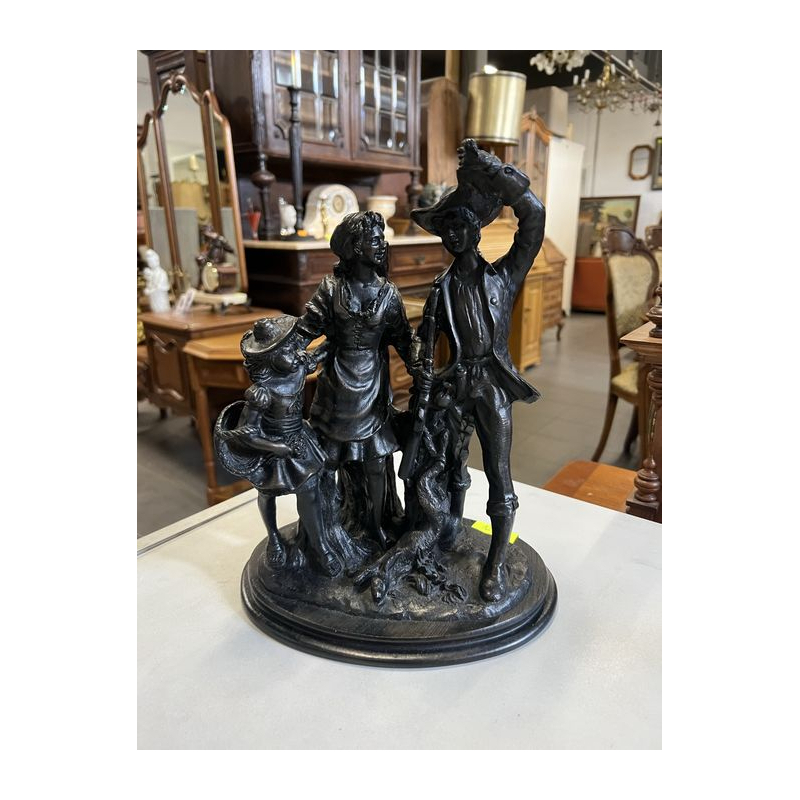 Przedmiotem sprzedaży jest figurka przedstawiająca scenę rodzajową, wykonana z żywicy imitującą brąz.