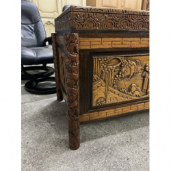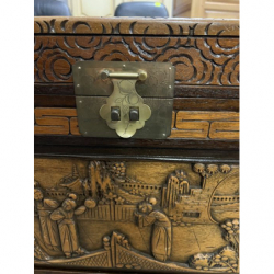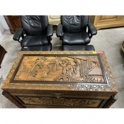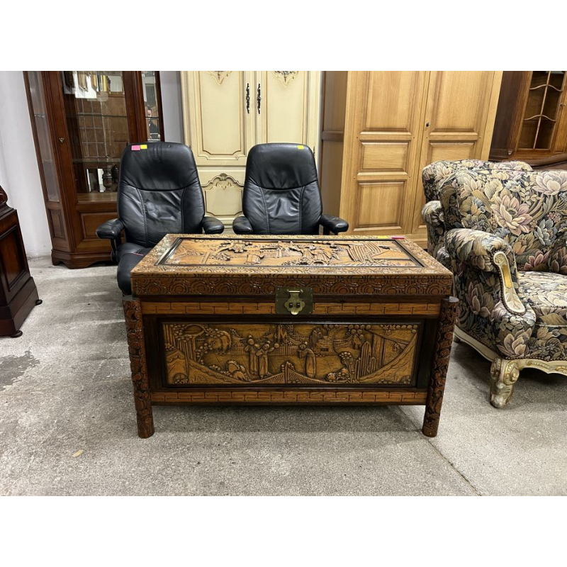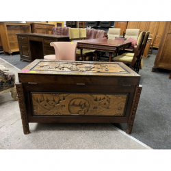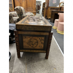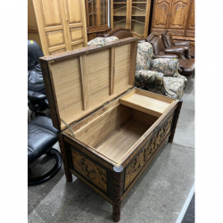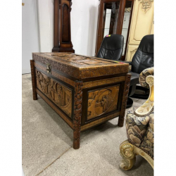 Przedmiotem sprzedaży jest skrzynia rzeźbiona, otwierana do góry.