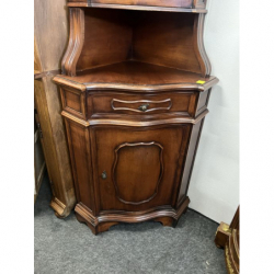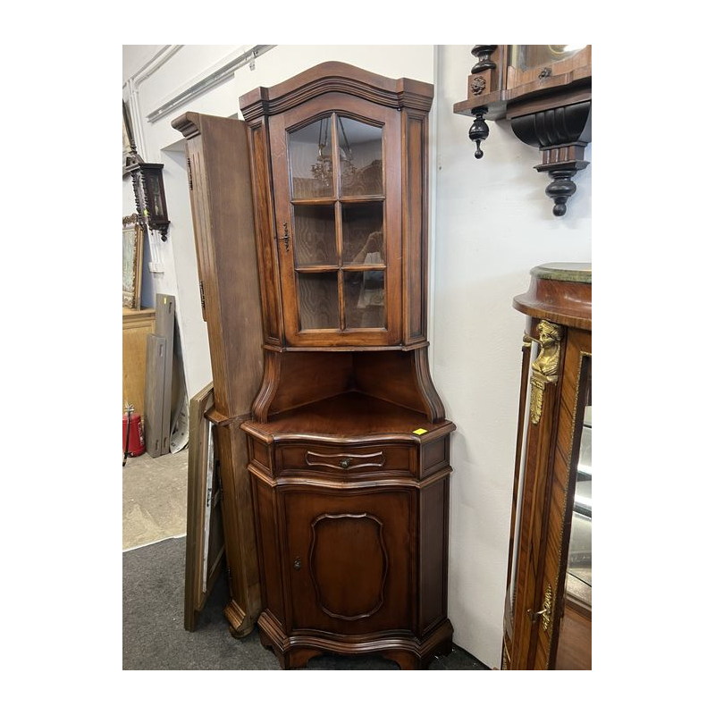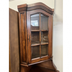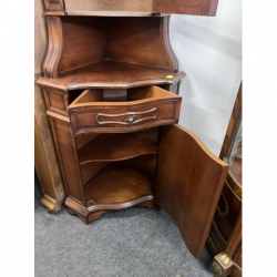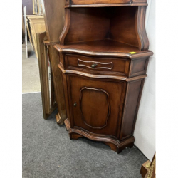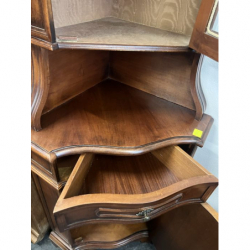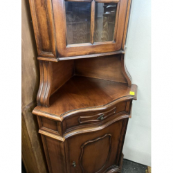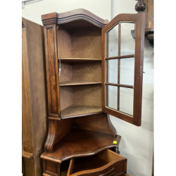 Wykonany z drewna, posiada szklane drzwiczki oraz szufladę.