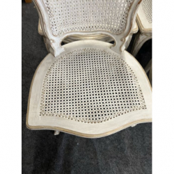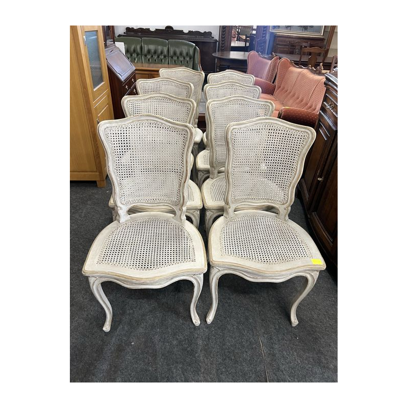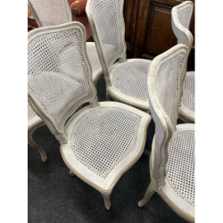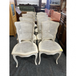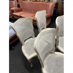 Zestaw 8 stylowych krzeseł z rattanowym siedziskiem.