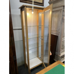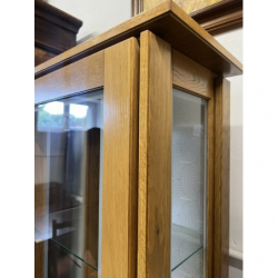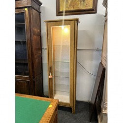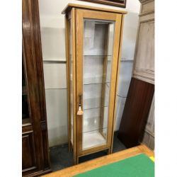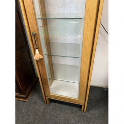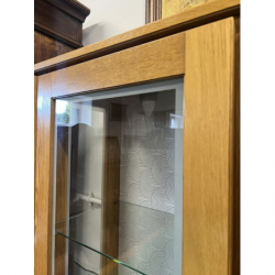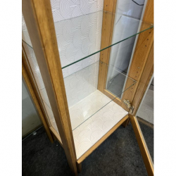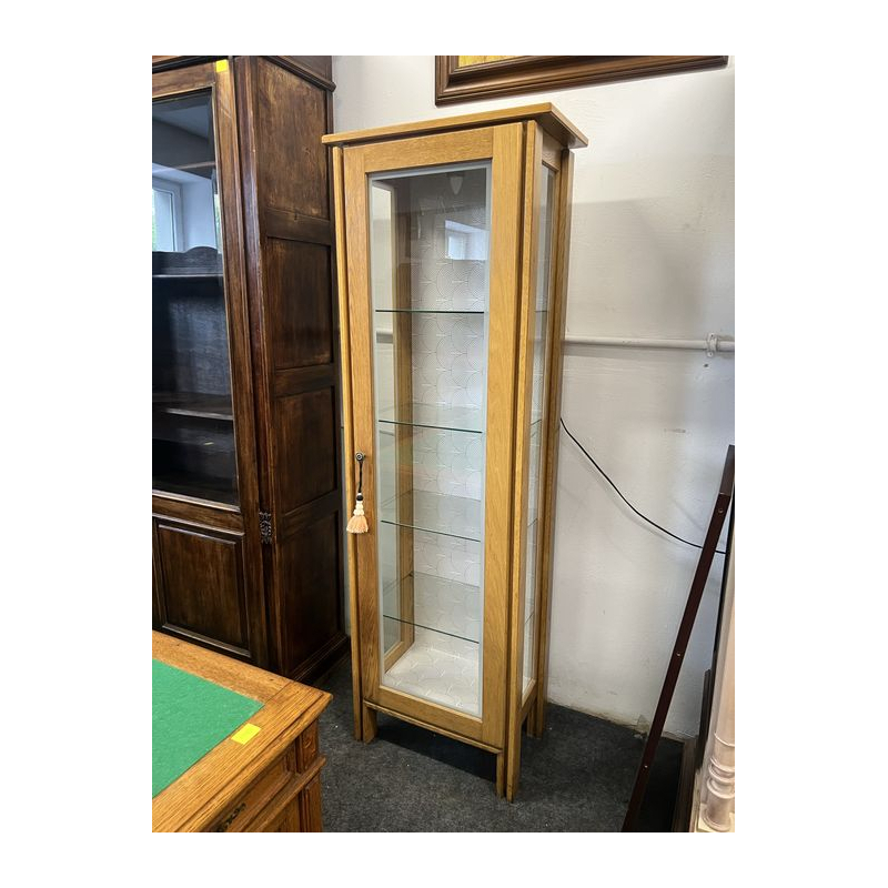 Drewniana, kompaktowa witrynka z drzwiami z przezroczystej szyby. Idealna do przechowywania i wystawiania drobnych przedmiotów. Mebel w dobrym stanie, gotowy do użytku. Podświetlana. Możliwość zakupu w systemie ratalnym . Przedmiot dostępny w Pionkach.
