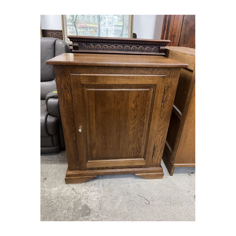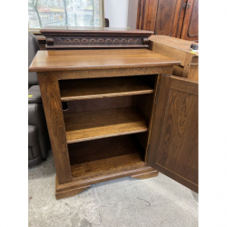 Wykonana z dębowego drewna, posiada eleganckie zdobienia i zamykane drzwiczki.