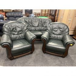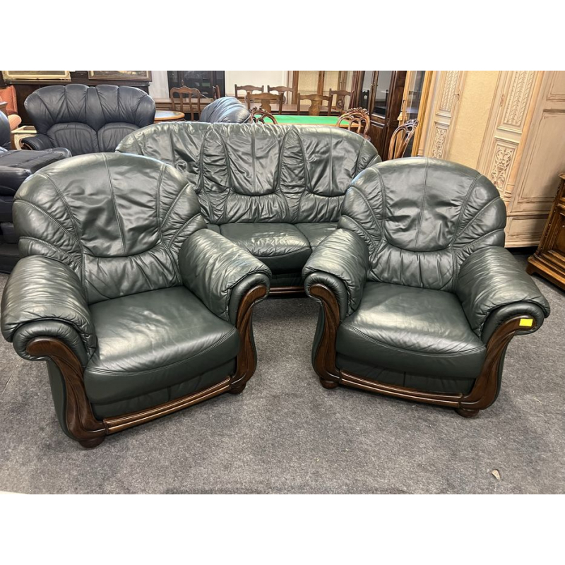 Skórzana kanapa z dwoma fotelem w dobrym stanie używana, ale wciąż w dobrej kondycji.
