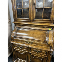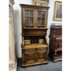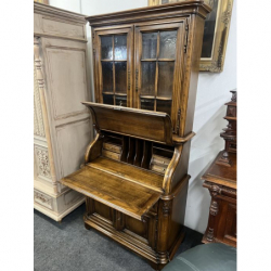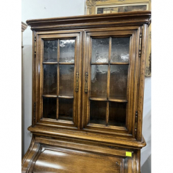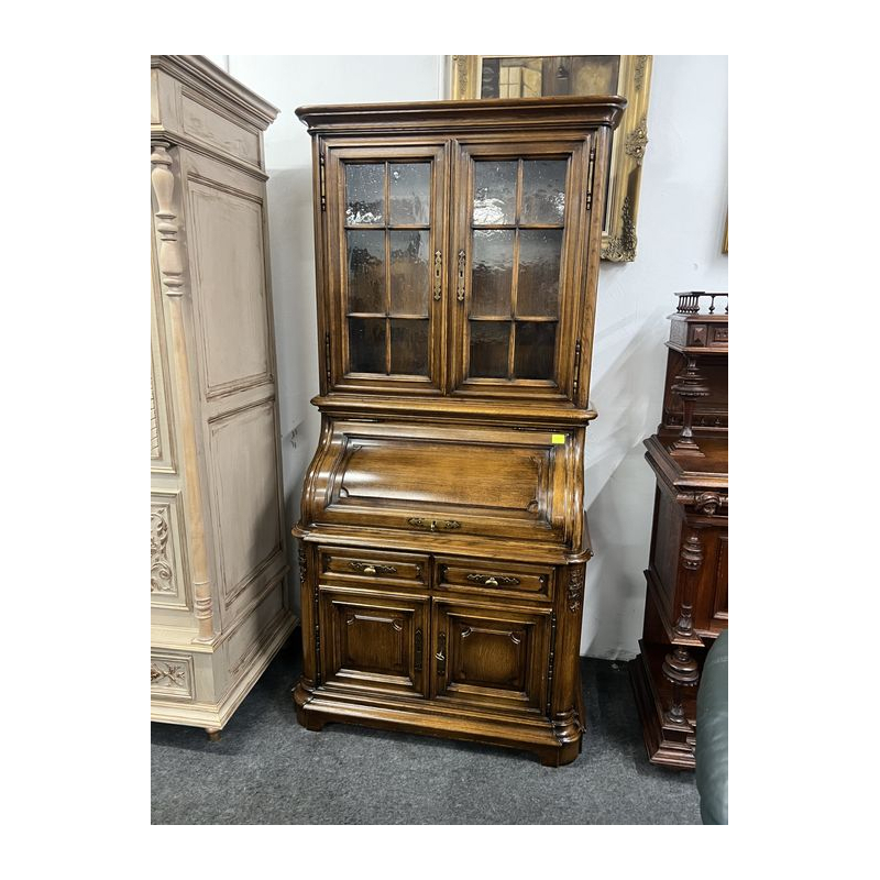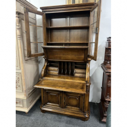 Przepiękny, solidny mebel wykonany z litego drewna, łączący funkcję witryny i sekretarzyka.
