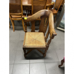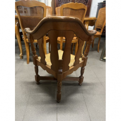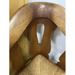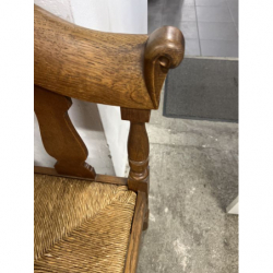 Stylowe, drewniane krzesło narożne z plecionką.