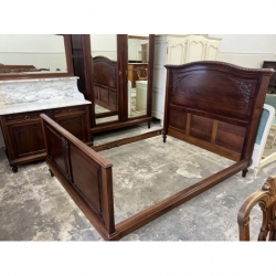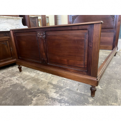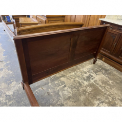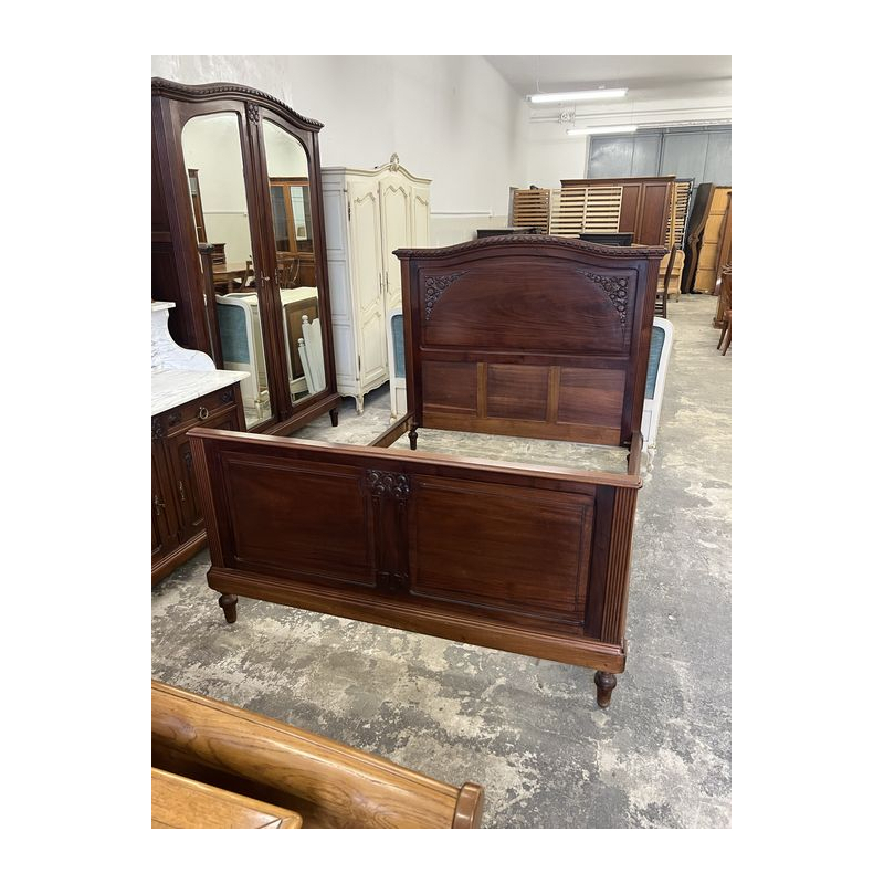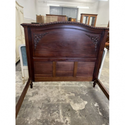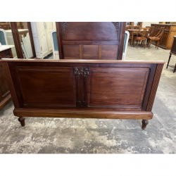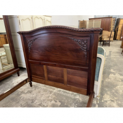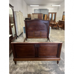 Stylowy, drewniany łóżko w stylu secesyjnym z pięknymi rzeźbionymi detalami.