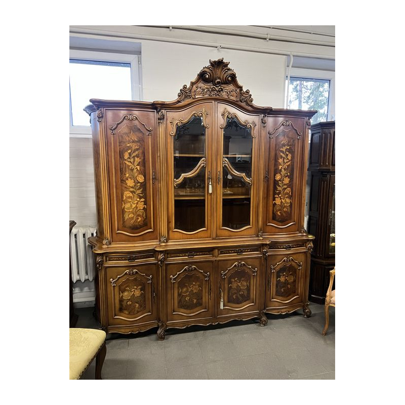 Oferuję przepiękną witrynę barokową bogato zdobioną rzeźbieniami i elegancką koroną w górnej części.