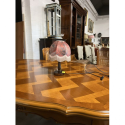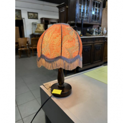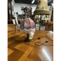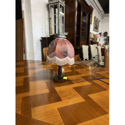 Stylowa lampa stołowa z pięknym, kolorowym abażurem.