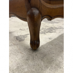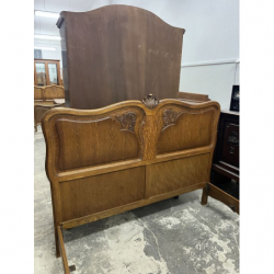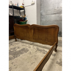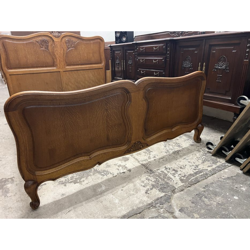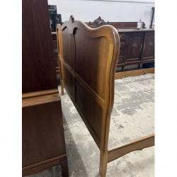 Przedmiotem sprzedaży jest drewniane łóżko w stylu ludwikowskim z elementami zdobień.
