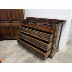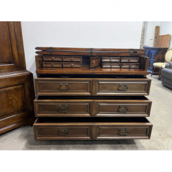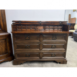Przedmiotem sprzedaży jest solidna, drewniana komoda/sekretarzyk w ciemnym kolorze.