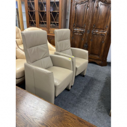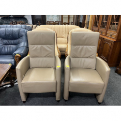 Przedmiotem sprzedaży są wygodne fotele skórzane w kolorze beżowym.
