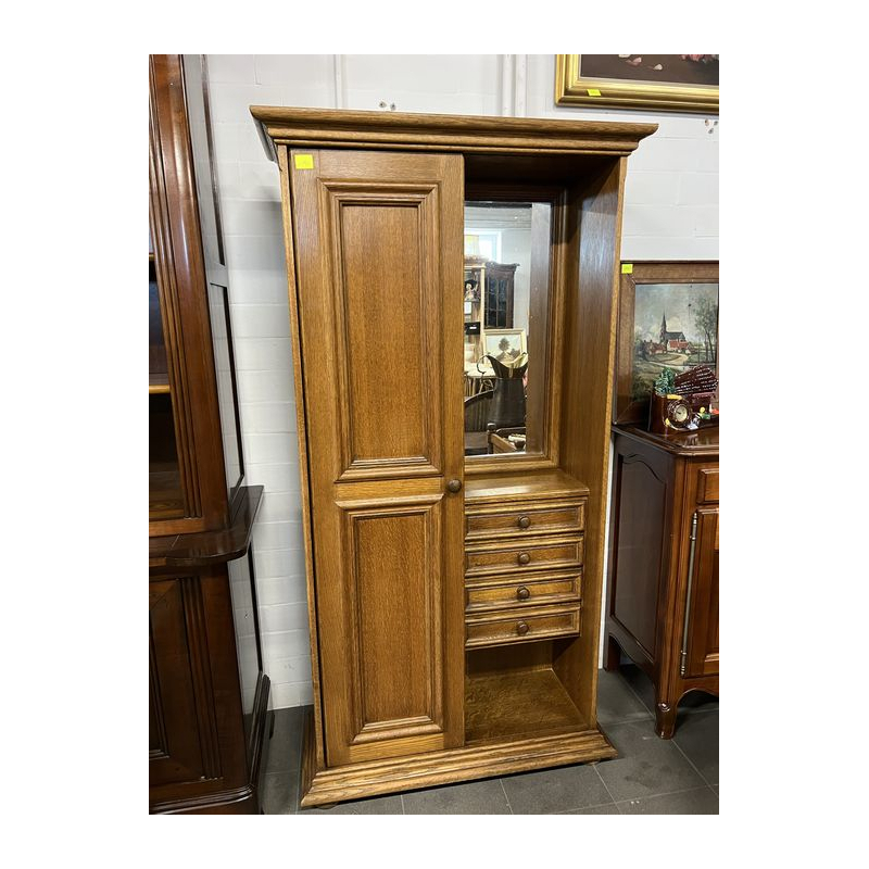 Posiada drzwi z lustrem oraz szuflady i półkę na dole.
