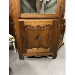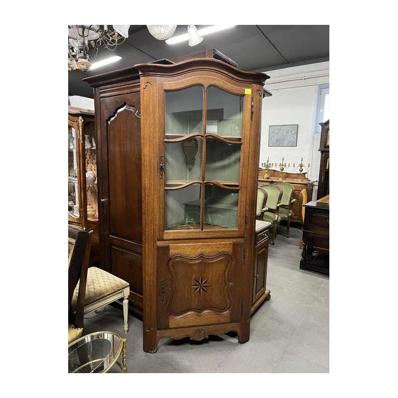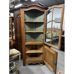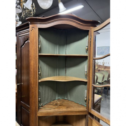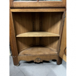 Przedmiotem sprzedaży jest drewniana narożna witryna z szybkami i szafką z drzwiczkami.