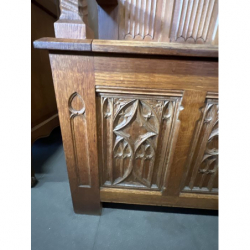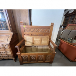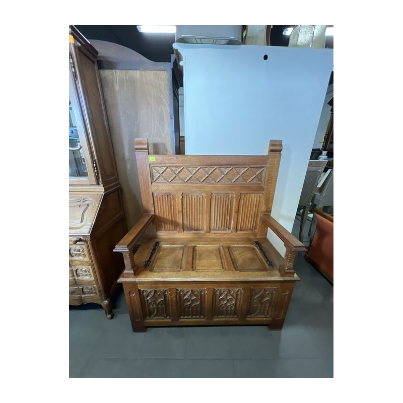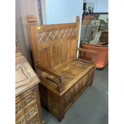 Przedmiotem sprzedaży jest zabytkowa drewniana ławka/ kufer z rzeźbionymi motywami.