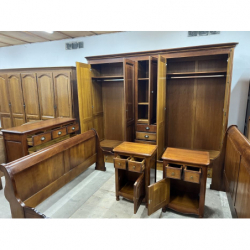 Meble wykonane są z drewna w ciepłym, brązowym kolorze.