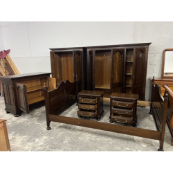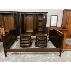 Składa się z dwóch szaf: 2- drzwiowej i 3-drzwiowej, komody, łóżka i dwóch szafek.