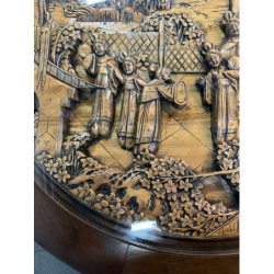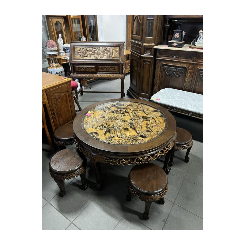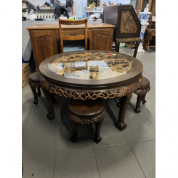 Przedmiotem sprzedaży jest orientalny okrągły stolik w stylu chińskim z 4 taboretami.