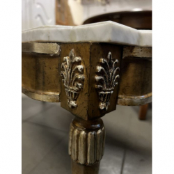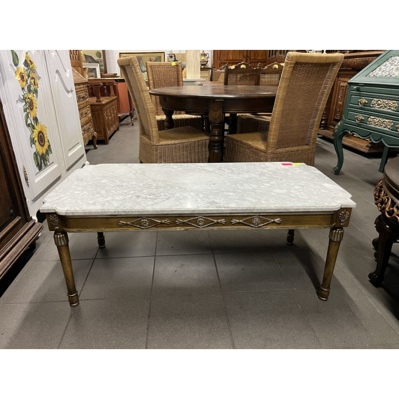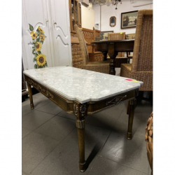Przedmiotem sprzedaży jest drewniana ława z marmurowym blatem.