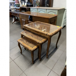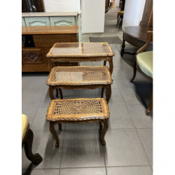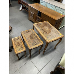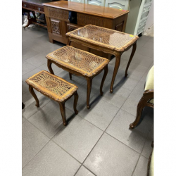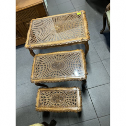 Przedmiotem sprzedaży jest zestaw trzech stolików z rafią w stylu ludwikowskim.
