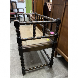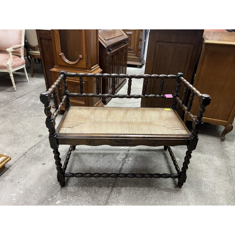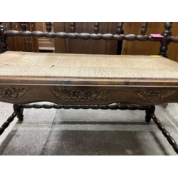 Przedmiotem sprzedaży jest stylowa drewniana ławka z plecionym siedziskiem.