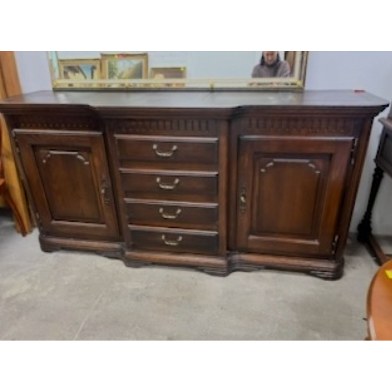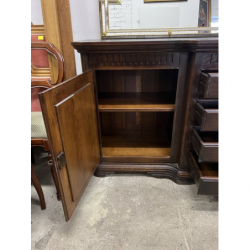 Posiada cztery szuflady oraz dwie zamykane szafki.