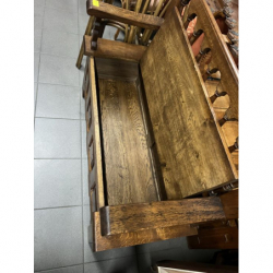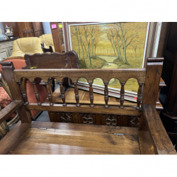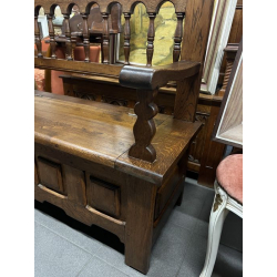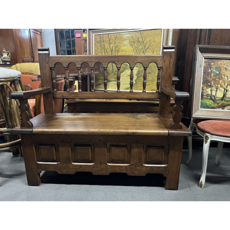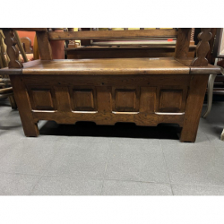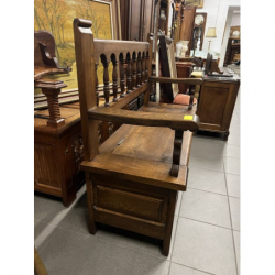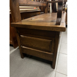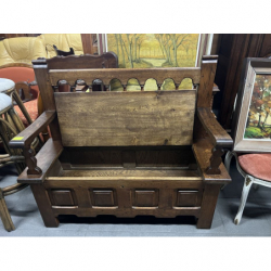 Posiada charakterystyczne rzeźbione oparcie i pojemną skrzynię.