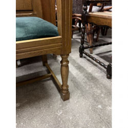 Posiada szafkę z drzwiczkami i tapicerowane siedzisko w eleganckim zielonym odcieniu.