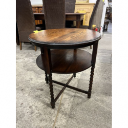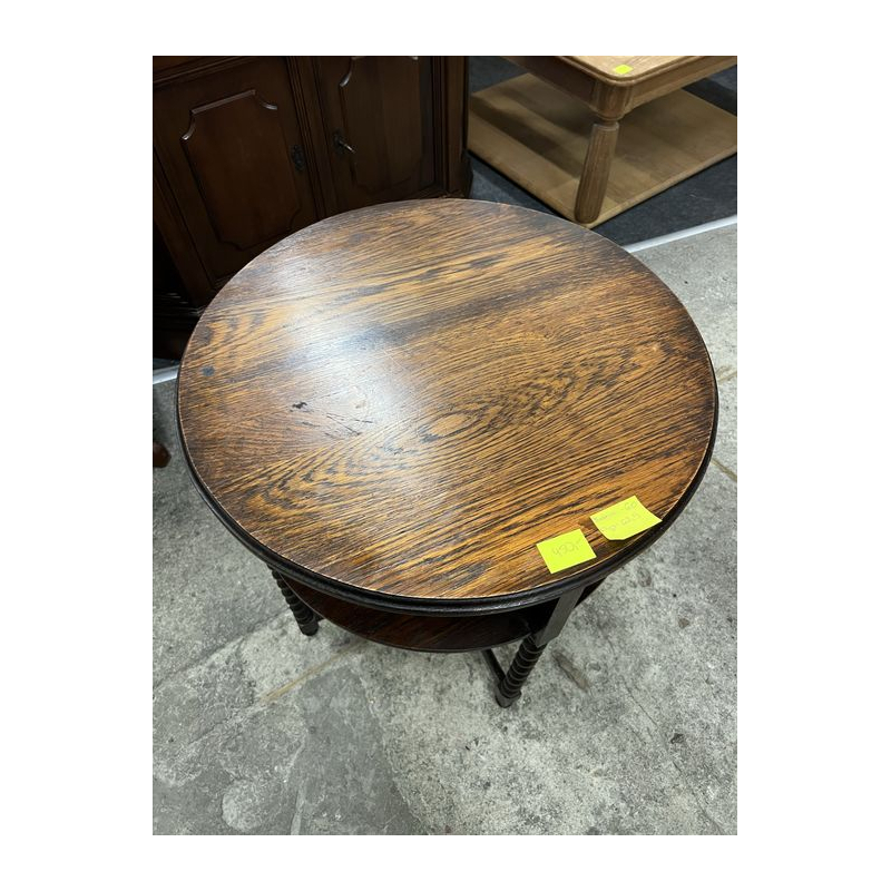 Przedmiotem sprzedaży jest drewniany okrągły stolik z półką.