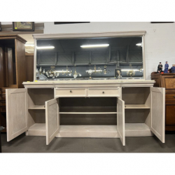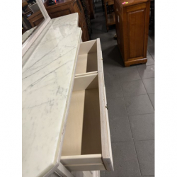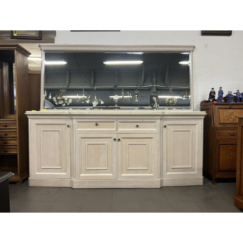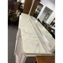 Przedmiotem sprzedaży jest komoda z marmurowym blatem i dużym lustrem.