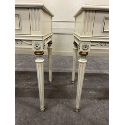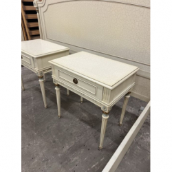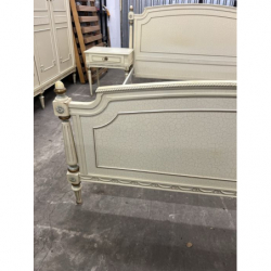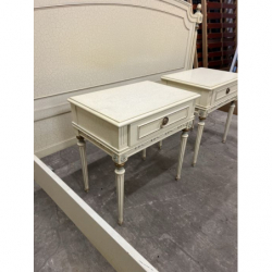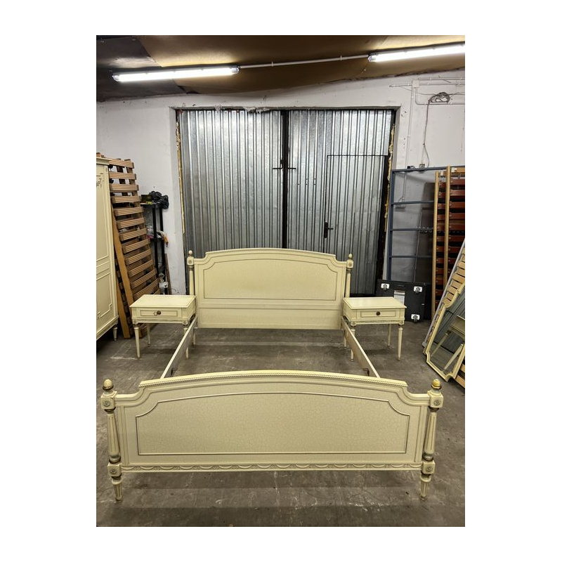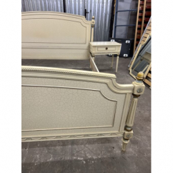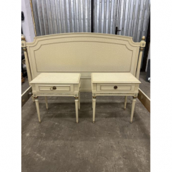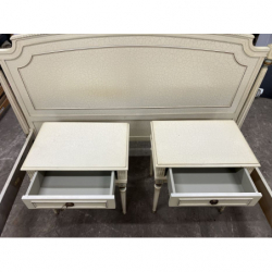 Przedmiotem sprzedaży jest stylowe łóżko z dwoma szafkami nocnymi w kolorze ecru.