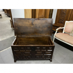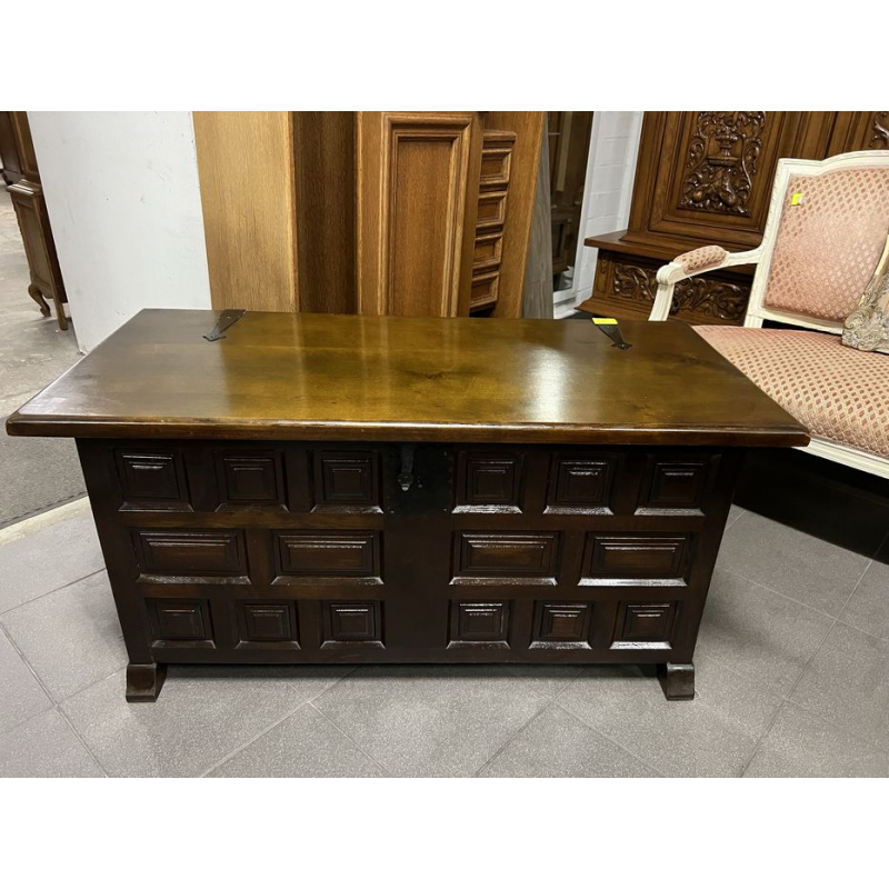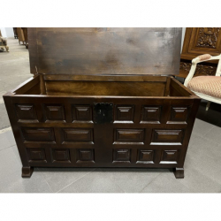 Przedmiotem sprzedaży jest dębowa skrzynia/kufer w ciemnym kolorze.