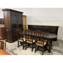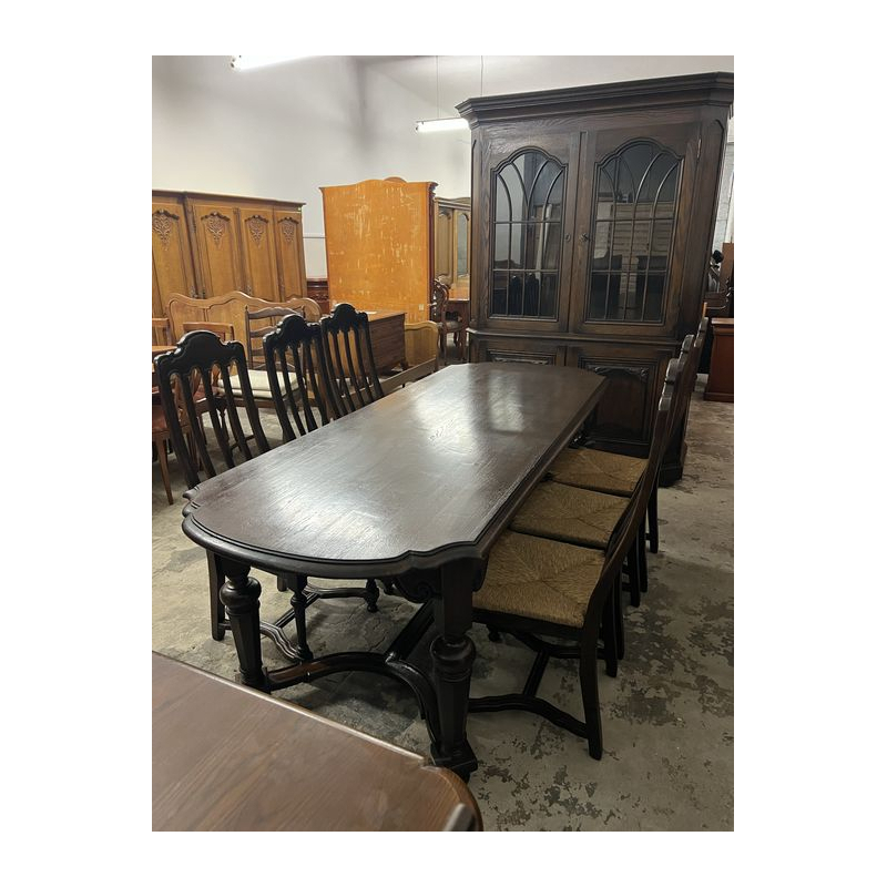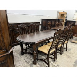 Przedmiotem sprzedaży jest dębowy stół z sześcioma krzesłami.