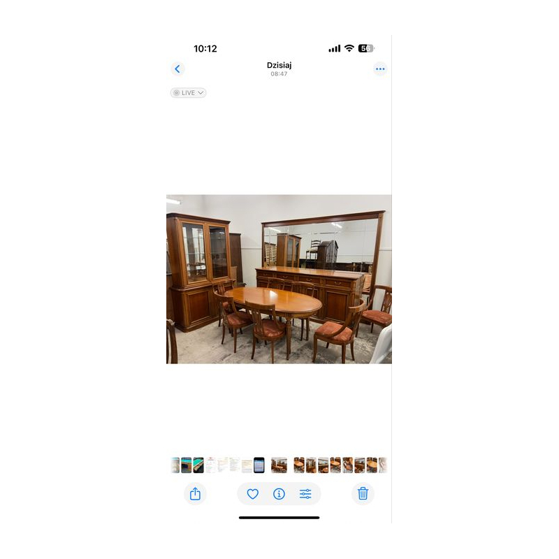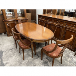 Przedmiotem sprzedaży jest bardzo ładny zestaw mebli stylowych na który składa się: witryna, stół i 7 stylowych krzeseł, duże lustro i komoda.