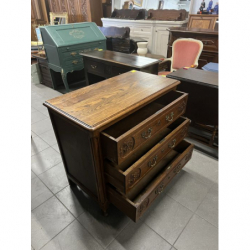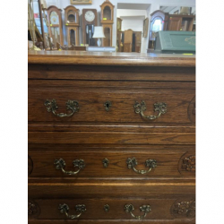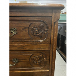 Ma piękne ozdobne rzeźbienia i mosiężne uchwyty.