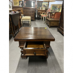 Przedmiotem sprzedaży jest drewniany stolik w stylu neorenesansowym z szufladką.