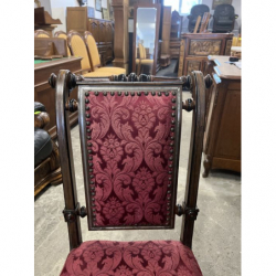 Krzesła mają piękną wzorzystą bordową tkaninę.