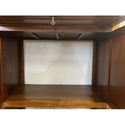Posiada zamykane drzwiczki a w środku półki które mogą służyć do przechowywania sprzętu RTV.
