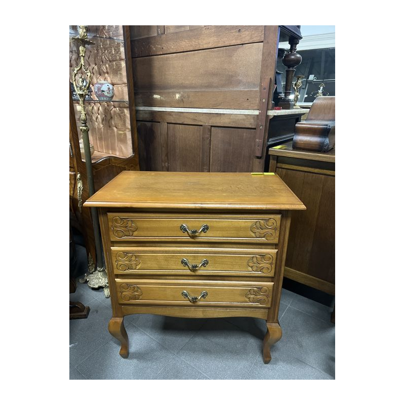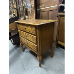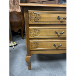 Posiada trzy szuflady z rzeźbionymi frontami.