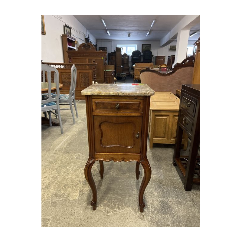 Przedmiotem sprzedaży jest szafka nocna w stylu rocaille z marmurowym blatem.