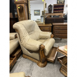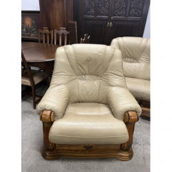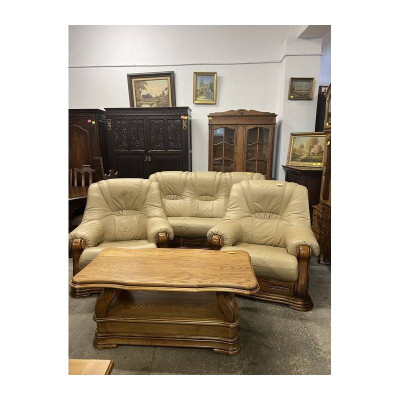 Przedmiotem sprzedaży jest wypoczynek skórzany na dębowym stelażu.