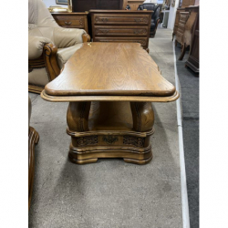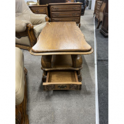 Komplet składa się z kanapy, dwóch foteli i ławy z szufladami.
