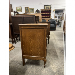 Posiada ozdobne rzeźbienia i uchwyty na frontach szuflad.