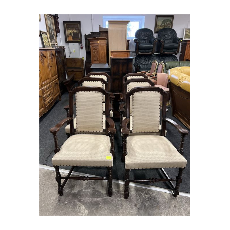 Przedmiotem sprzedaży jest komplet sześciu krzeseł dębowych z podłokietnikami.